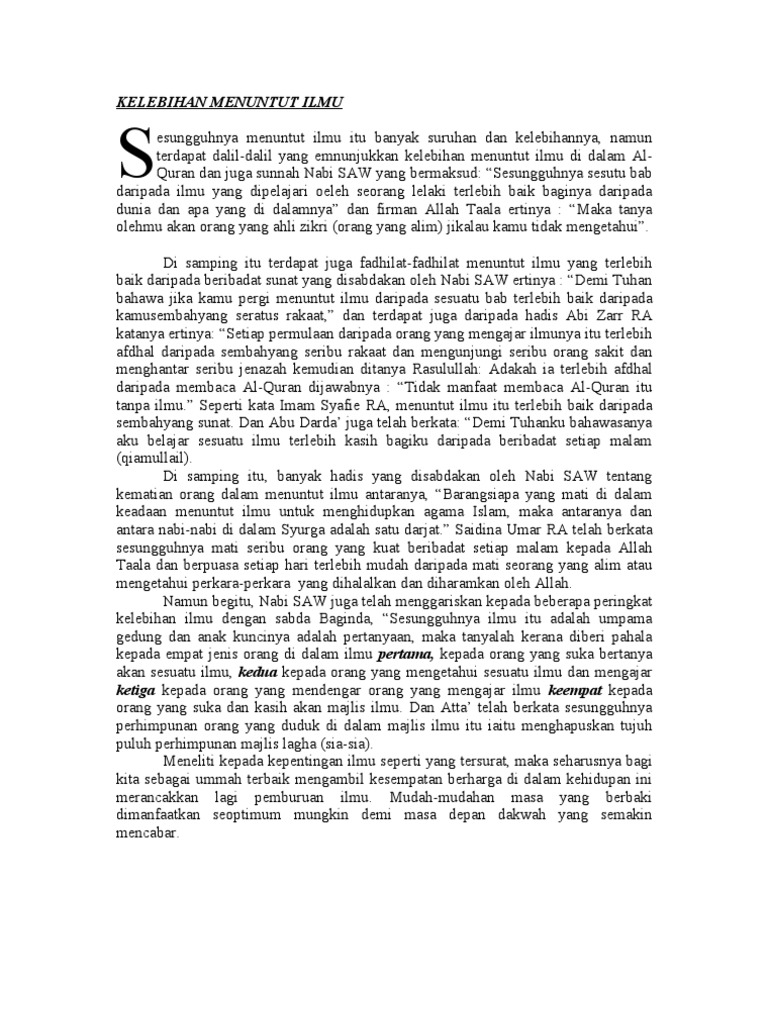 Dalil Mencari Ilmu - 2. Dalil tentang menuntut ilmu hukum mencari ilmu dalam islam adalah fardlu, baik mencari ilmu dunia maupun ilmu agama. Orang berilmu diberi kebaikan di dunia dan akhirat oleh allah. Menuntut ilmu adalah suatu kewajibaban bagi umat manusia, manusia tampa ilmu tidak ada harganya. Ada banyak pahala menuntut ilmu yang bisa didapatkan selama bulan puasa hingga malam terakhir bulan ramadhan, diantaranya adalah: Adalah kewajiban bagi tiap muslim untuk menuntut ilmu.